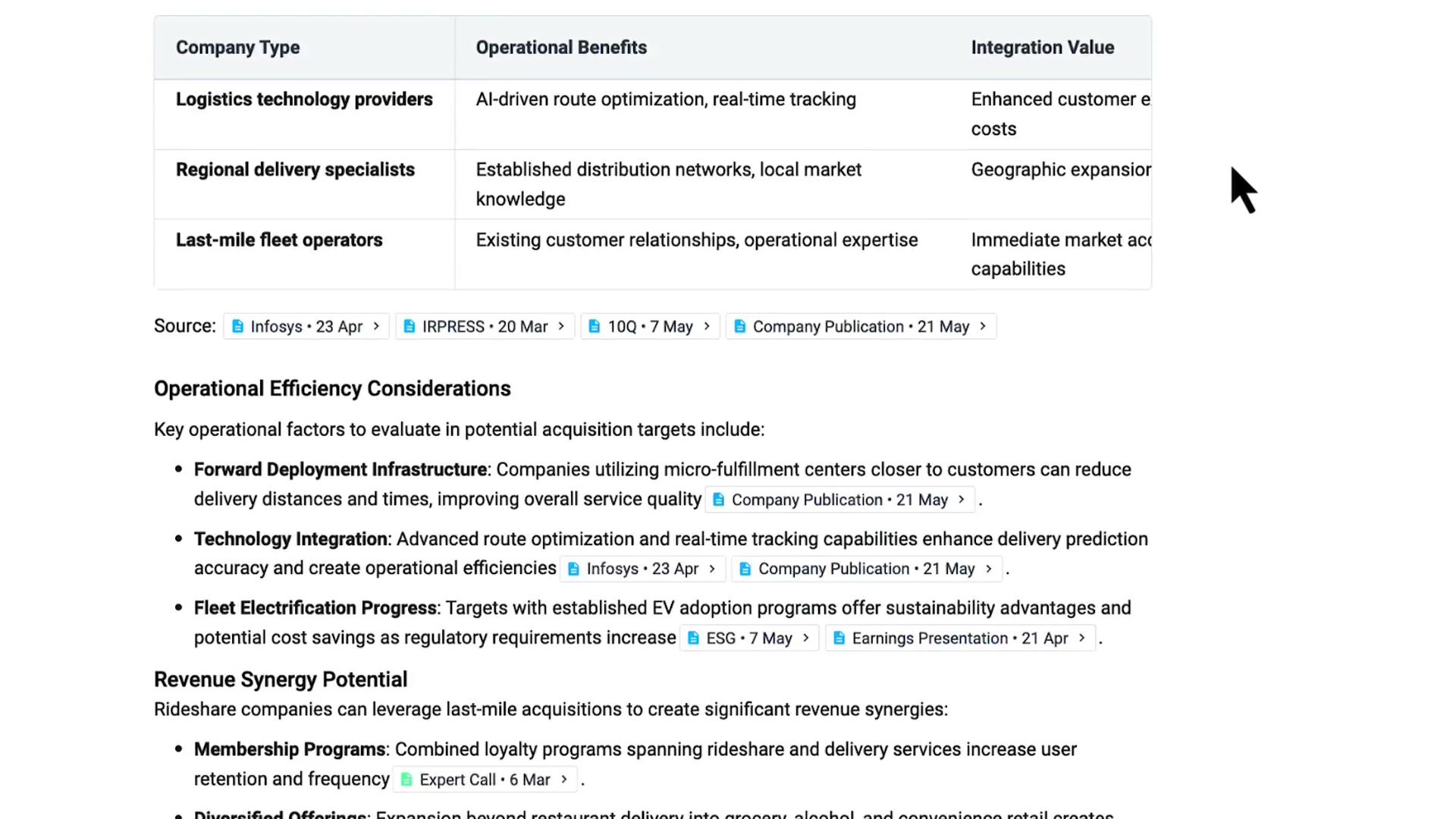 Provide a concise summary of 5-10 pages of specific companies, organized by sector, that Uber could acquire that would fit with its acquisition strategy and strengthen its competitive positioning. Read full results.